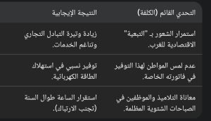 ​الجاذبية الاستثمارية: المستثمر الأجنبي يبحث عن “الانسجام التشغيلي”. توحيد التوقيت يقلل من تكلفة المعاملات ويُسهل حركة رؤوس الأموال والخدمات البنكية العابرة للحدود.